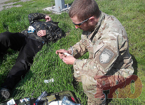 Очевидцами происшествия стали госпитальеры Правого сектора, именно они оказали первую медицинскую помощь пострадавшему мужчине.