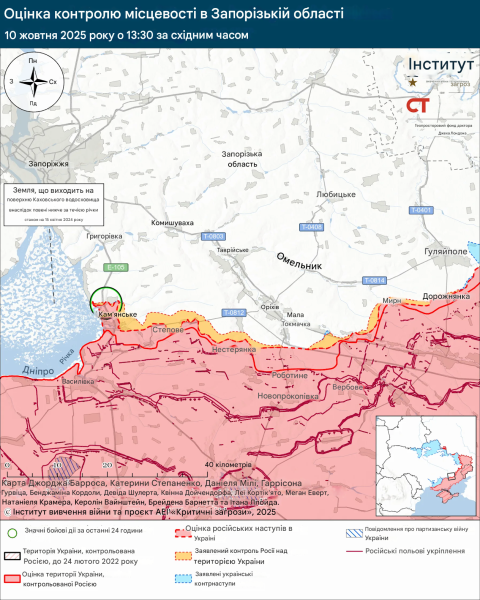 Лінія фронту на півдні (заході) Запорізькій області станом на 10 жовтня 2025