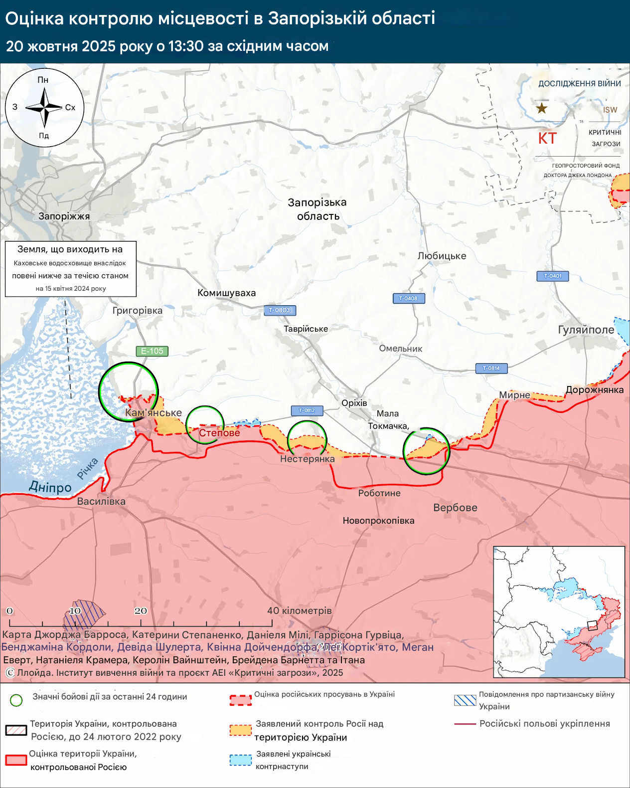 Як пише американський Інститут вивчення війни (ISW), 19 та 20 жовтня російські війська атакували поблизу Малої Токмачки, Новоданилівки, Нестерянки, Новоандріївки, Степногірська, Плавнів та Приморського. Російський мілблогер стверджував, що українські війська контратакували в Приморському та Степногірську.