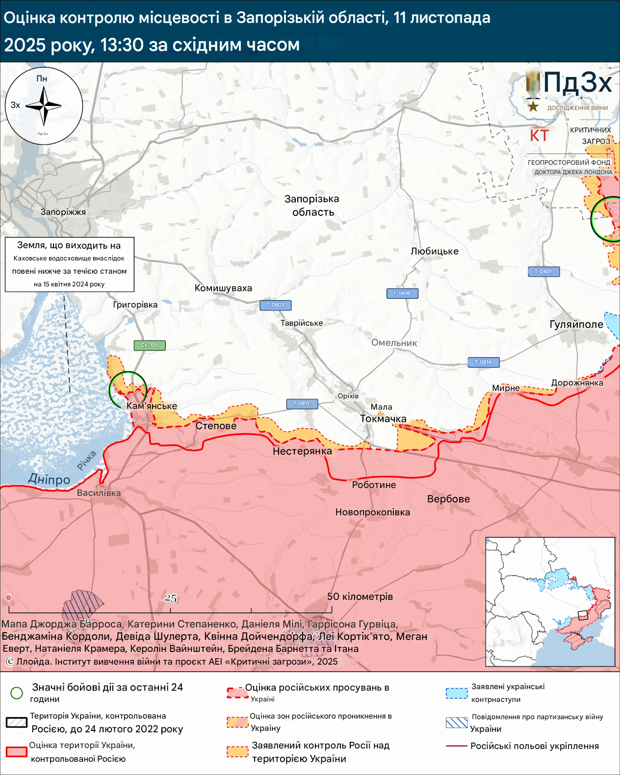 Лінія фронту біля Гуляйполя станом на 11 листопада 2025 – ISW