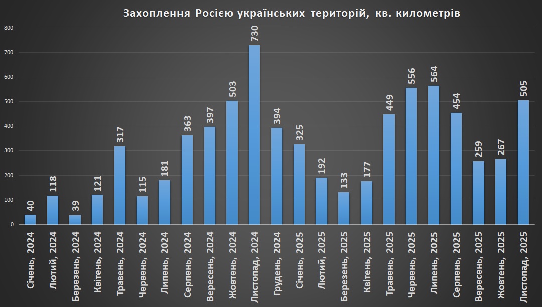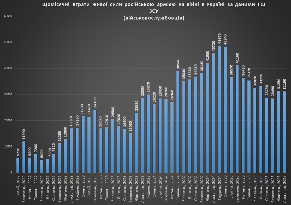 Щомісячні втрати російської живої сили станом на 1 грудня 2025