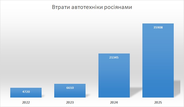 Втрати російської автотехніки за роками війни станом на 1 грудня 2025