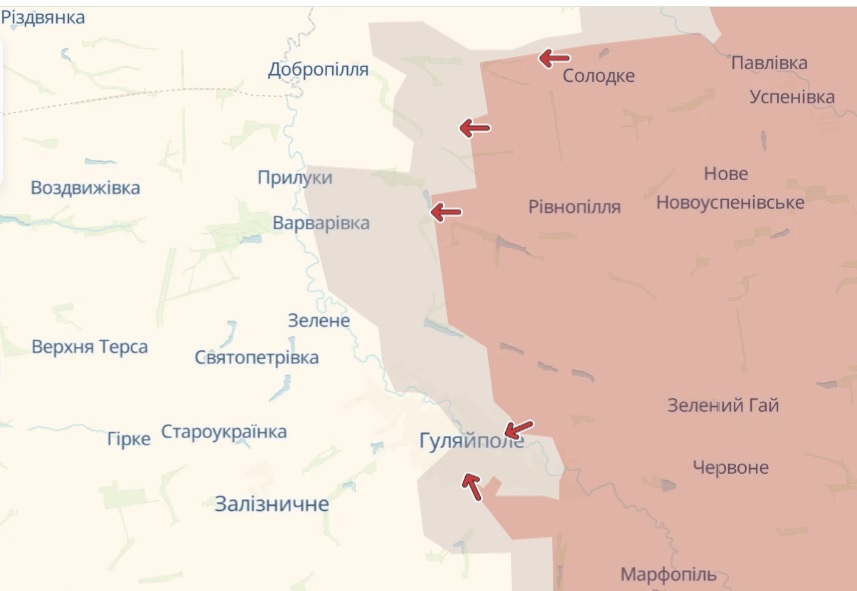 Ресурс DeepState заявив, що російські сили просунулися біля Гуляйполя.
