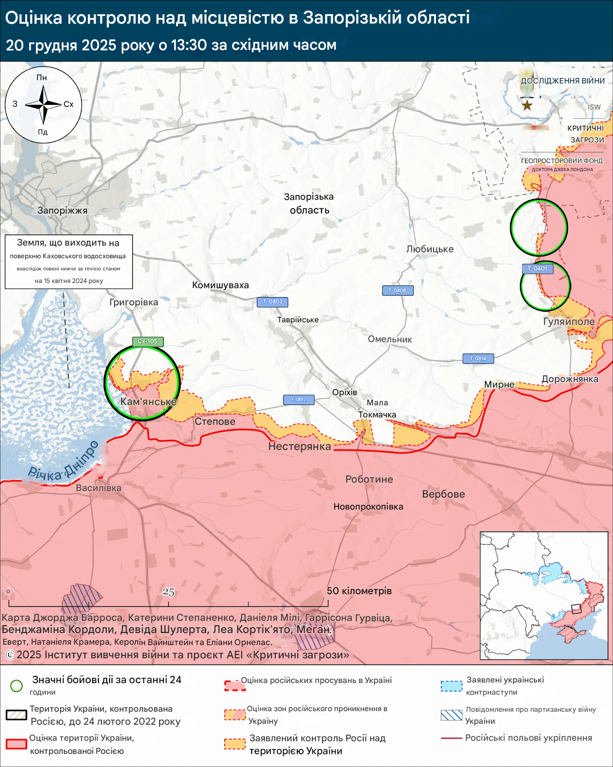 Лінія фронту на півдні від Запоріжжя станом на 20.12.2025