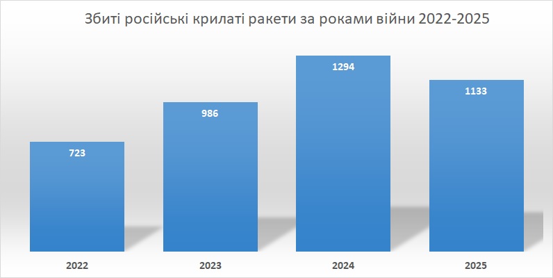 Росія масштабувала випуск крилатих ракет і збільшила кількість запусків в Україну. Зниження числа збитих ракет вказує на зменшення можливостей української ППО відповідати на масовані запуски та необхідність збільшувати кількість пускових установок ЗРК для протистояння російським ракетним атакам.