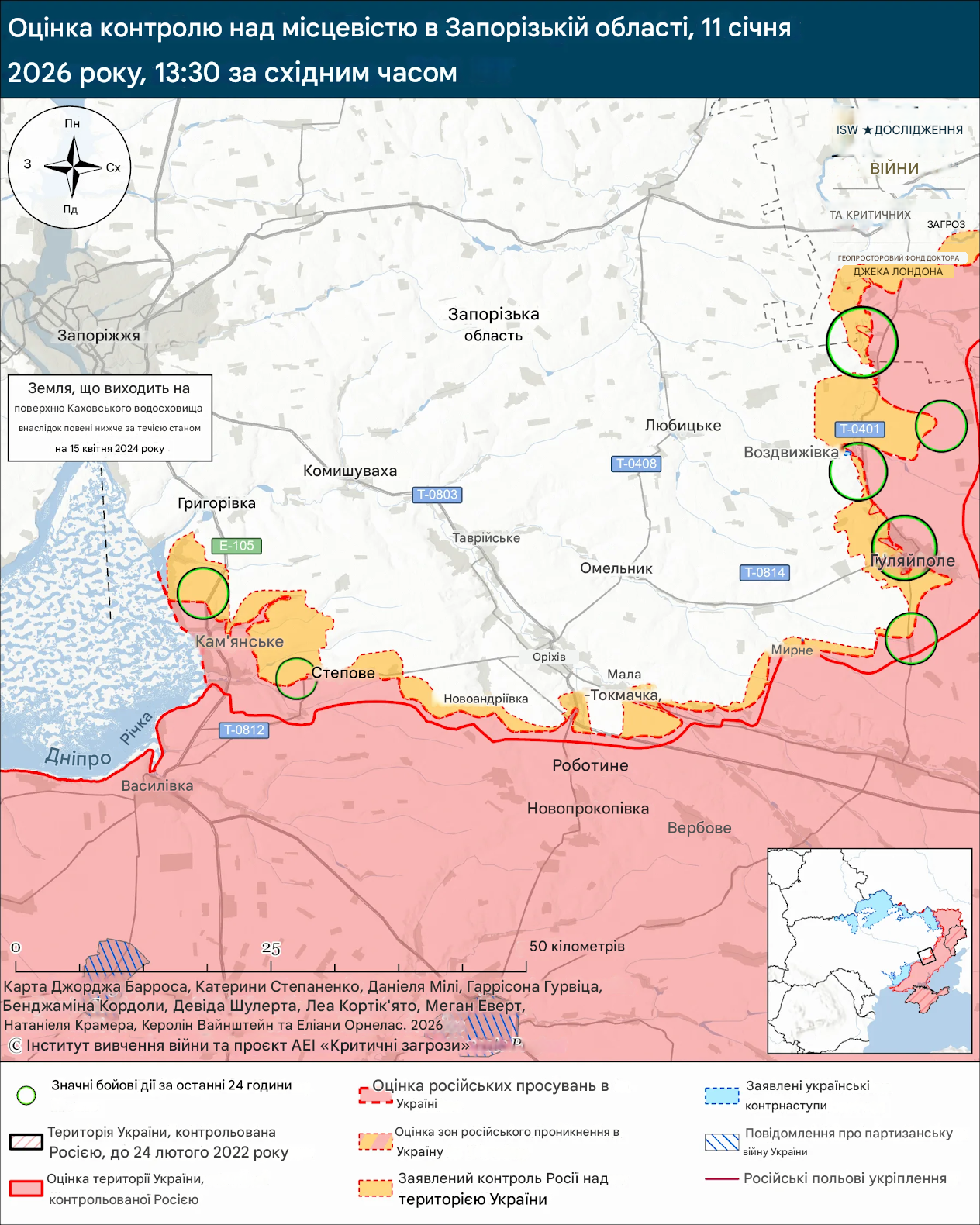 Геолокаційні відеозаписи, опубліковані 11 січня, показують, як російські війська завдають ударів по українських позиціях на південний схід від Лук’янівського (на північний захід від Оріхова) – району, в якому, за попередніми даними російських джерел, російські війська утримували позиції.