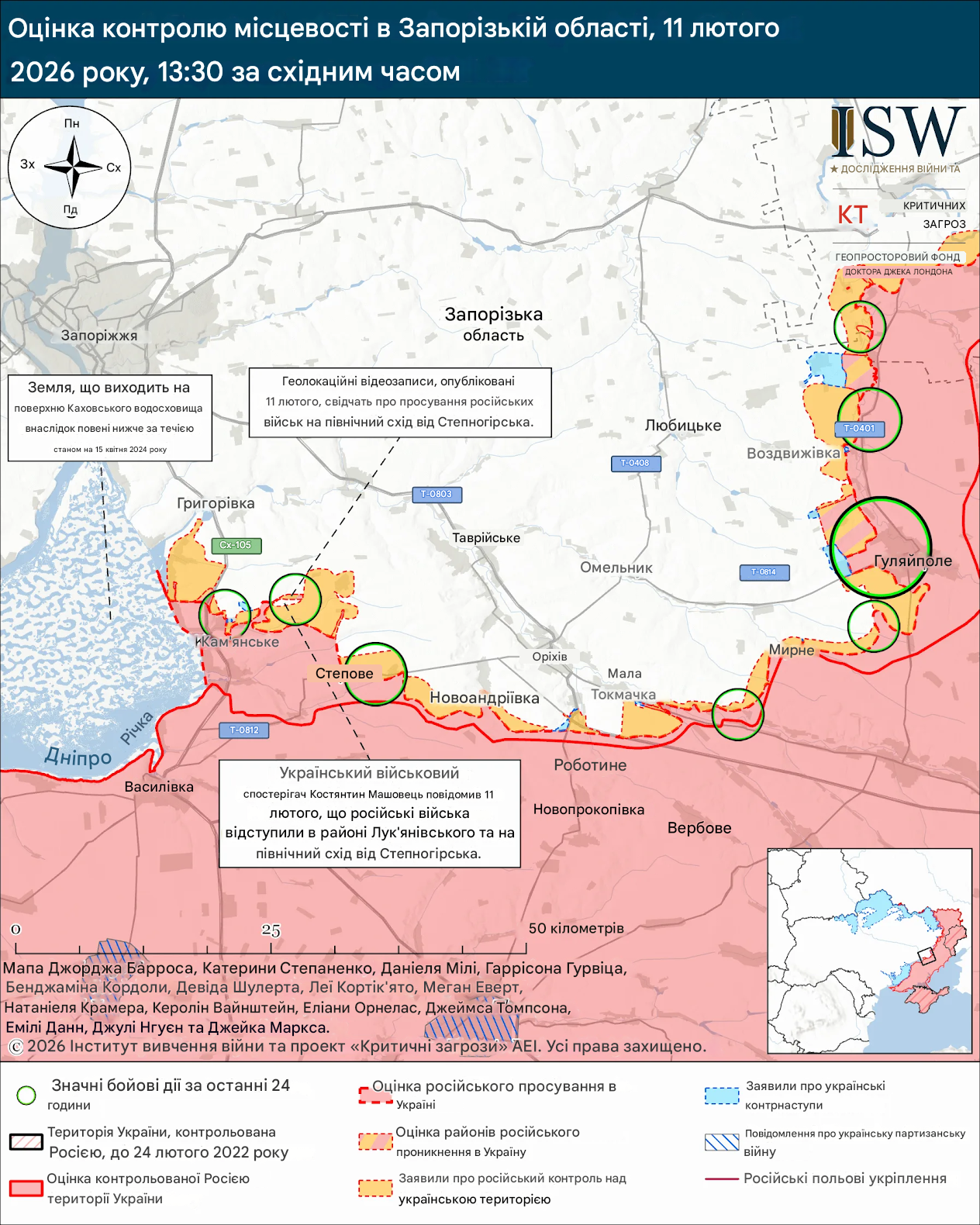 Лінія фронту на Гуляйпільському напрямку 11 лютого 2026 – ISW