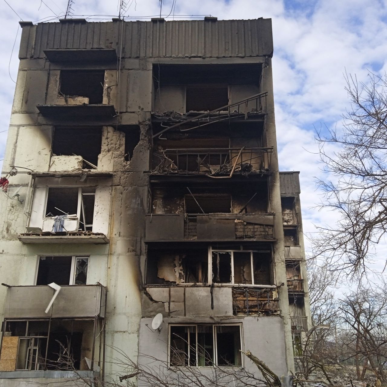 Вранці 8 березня мешканці п’ятиповерхівки на вулиці Незалежності в окупованому райцентрі Василівка прокинулися від гуркоту та пострілу.
